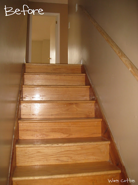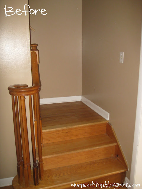 Here is what the staircase/upstairs hallway looked like when we moved in...