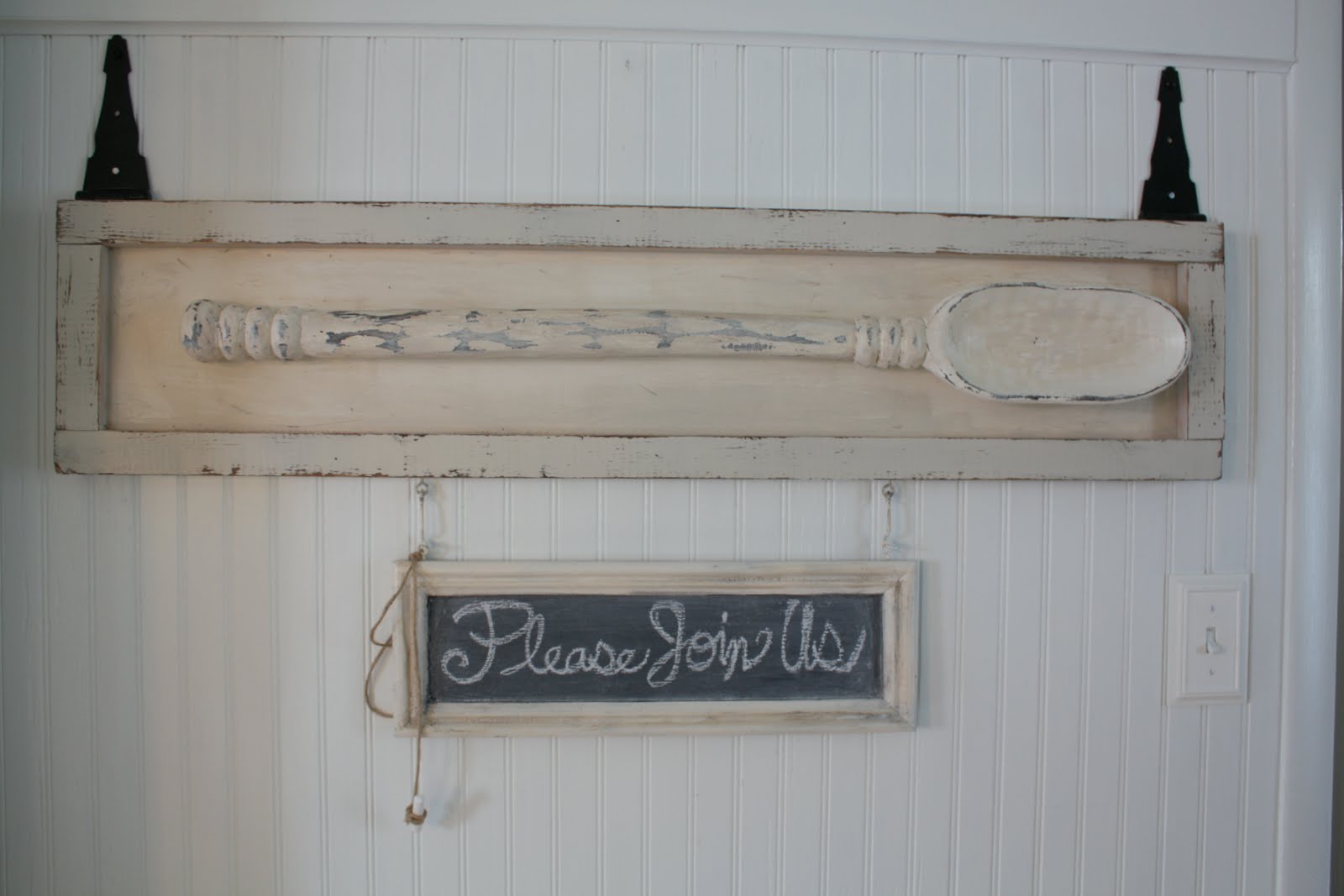 I found the ginormous wooden spoon while out thrifting. It was stained brown and was kinda neat like it was, but I had something else in mind.